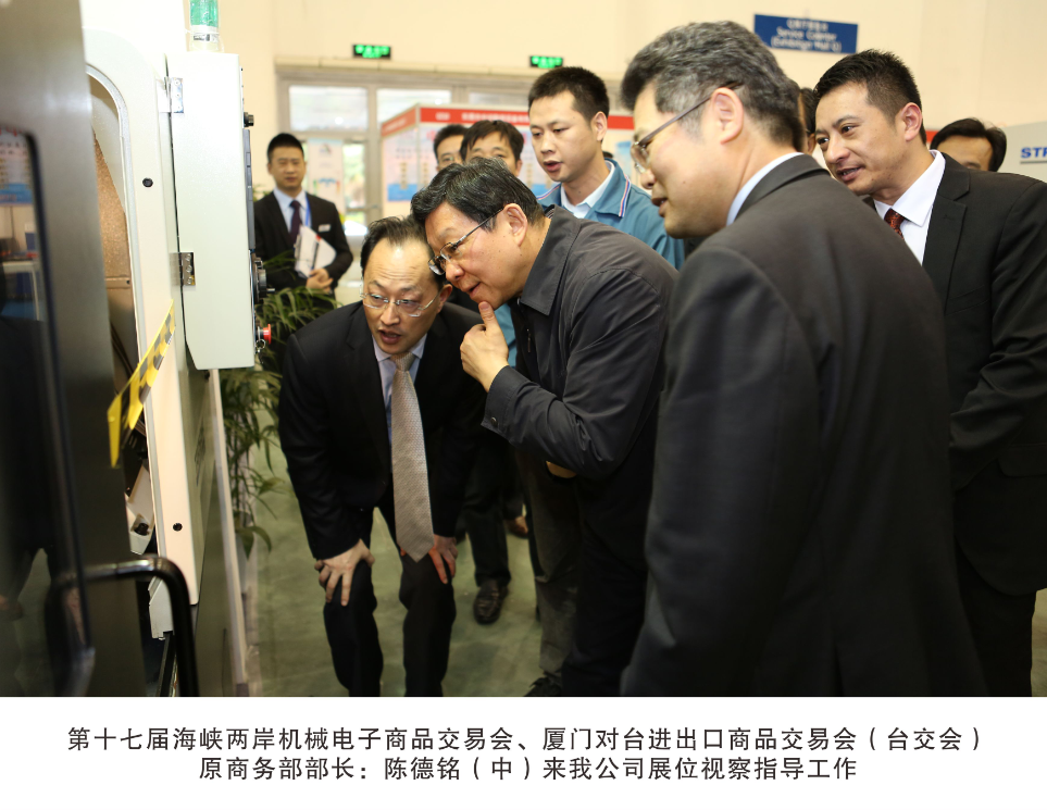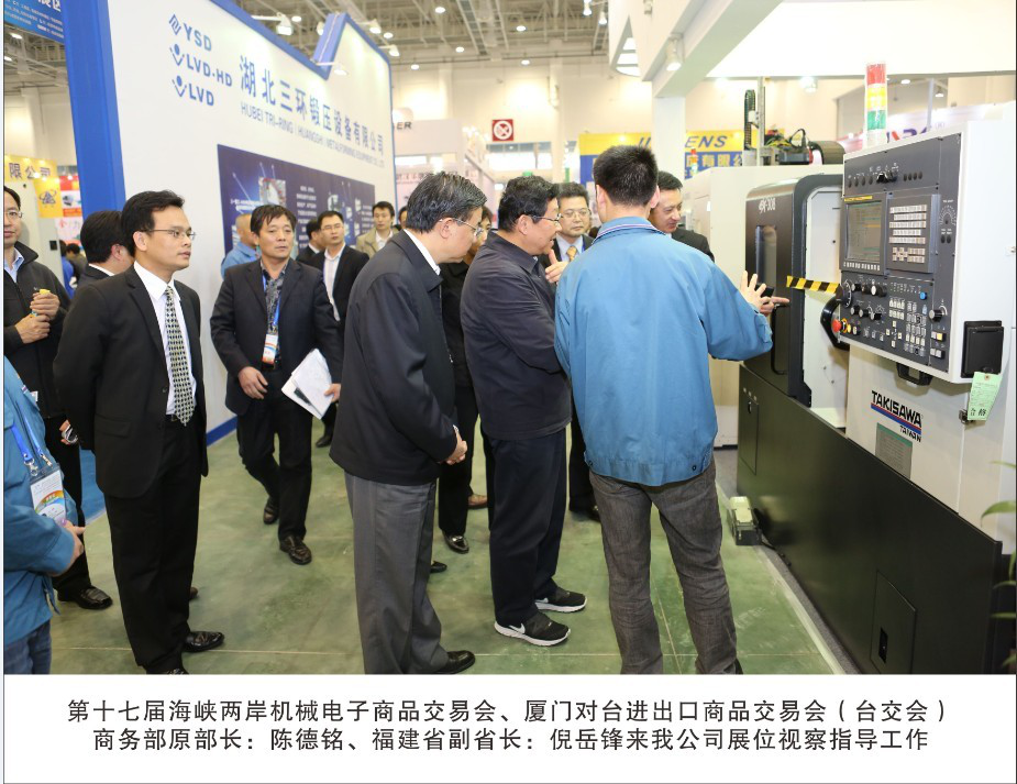 第17屆臺(tái)交會(huì),臺(tái)灣瀧澤展出了雙主軸雙刀塔高端車銑機(jī)、帶Y軸的先進(jìn)車銑機(jī)、非常通用的車銑機(jī)以及高度自動(dòng)化配加自制機(jī)械手的數(shù)車。此次展會(huì)來(lái)我司展位參觀人數(shù)約2800人,參觀者對(duì)瀧澤品牌、品質(zhì)、性價(jià)比、自動(dòng)化及售后服務(wù)等有了更充分更明確的認(rèn)識(shí),確立了瀧澤機(jī)在福建市場(chǎng)高端機(jī)的地位。值得一提的是原商務(wù)部部長(zhǎng)、現(xiàn)海協(xié)會(huì)會(huì)長(zhǎng)陳德銘率團(tuán)到瀧澤展臺(tái)觀摩探討并指導(dǎo)工作。